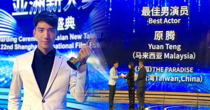 马来西亚新生代演员原腾凭台湾电影《乐园》“鼠仔”一角荣膺第22届《上海国际电影节亚洲新人奖》“最佳男演员”,成为新科影帝!他也是继“师兄”《分贝人生》陈泽耀(阿哲)后第二位在该盛事获封影帝的大马演员,为国争光的他他在台上激动发布宣言:“谢谢我的国家马来西亚!”