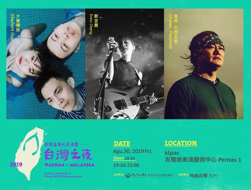 继2018年第一届台马音乐人交流会完美收官,获得热量回响后,由台湾文化部影视及流行音乐产业局主办,角头音乐承办的第二届“台马音乐人交流会”再次归来!除了再次邀请台湾和马来西亚音乐人相聚交流以外,今年8月30日“台湾之夜”邀来新生代文艺女神郑宜农、数字摇滚乐团- 大象体操和金曲奖最佳原住民语歌手得主查劳·巴西瓦里献唱!
