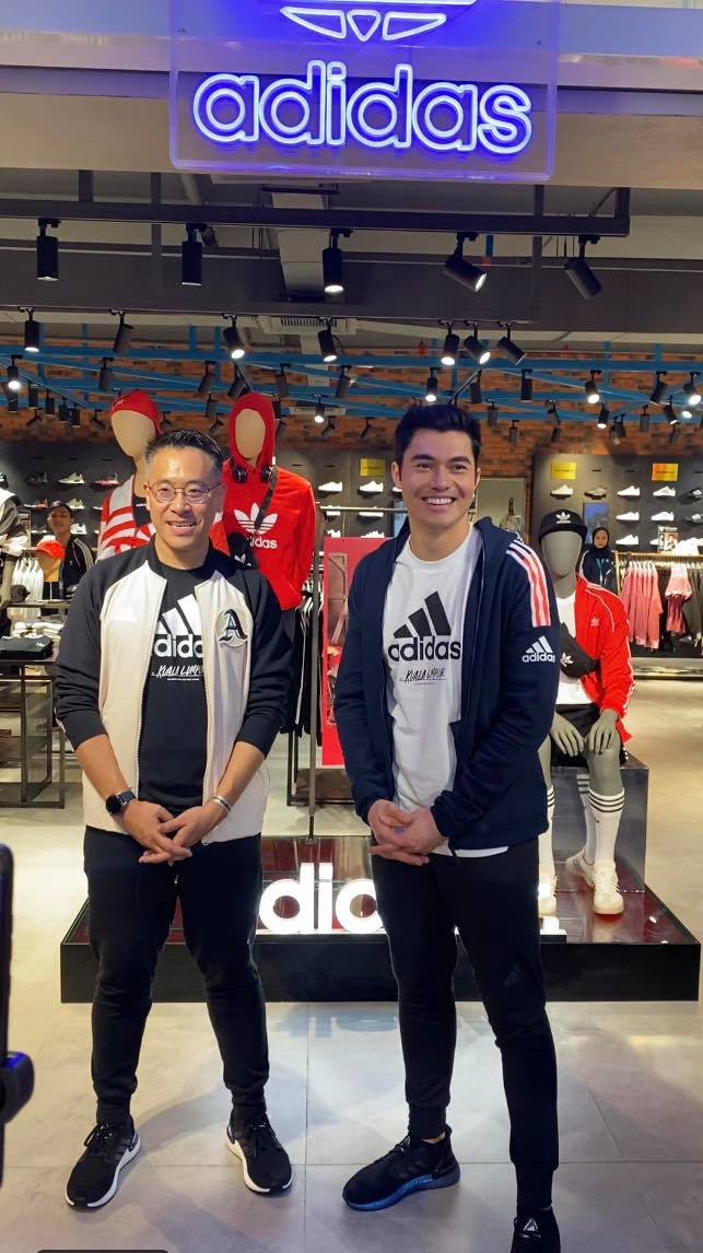被问起及运动必备的3样物品,亨利高汀有点害羞的表示,因为长腿毛发浓密,所以要用紧身裤搭配运动膝短裤掩饰脚毛。拳击手套和运动包包也是每次到健身房的必备。在店面巡礼时,他穿上爱迪达“最强跑鞋”Ultraboost 20感受了最极致的跑步体验并大加赞赏。当看到店内放置放的宣传照片是在新加坡拍摄时,他笑言希望以后能到大马夜市(Pasar Malam)拍一组照片做宣传。