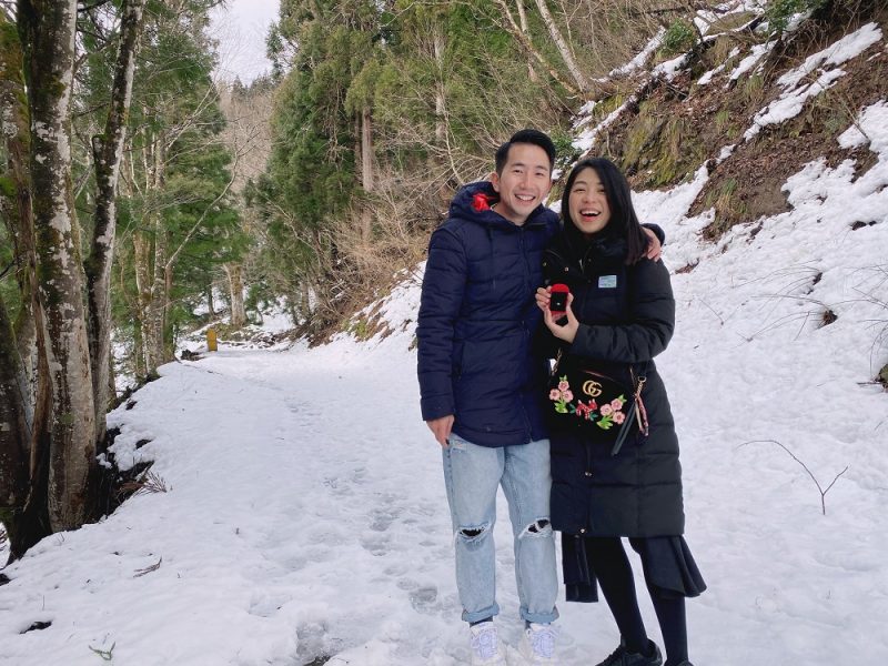 Jack表示,其实这趟日本之旅在出发前他也没有故意设计或做任何求婚计划,毕竟碰上新冠型肺炎以及近期萃汶爱犬离世,两人心情不多不少受影响;直到旅程接近尾声时,两人去到高山地区见到白雪茫茫一片时,Jack决定鼓起勇气在这个浪漫的雪地上向女友求婚。