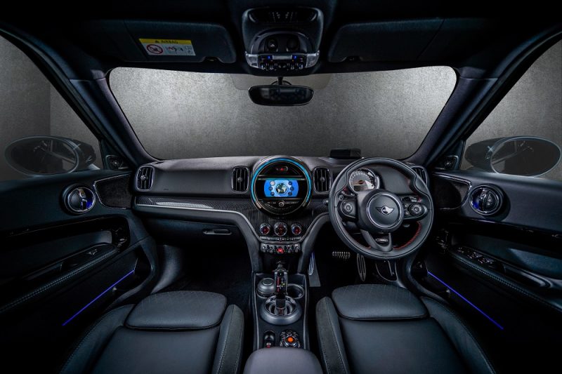 让Blackheath版新MINI Countryman显得精密感十足的是由碳黑Cross Punchs真皮跑车座椅辅助的雅致亮黑顶蓬。Blackheath版新MINI Countryman内装由钢琴黑MINI Yours照明内部饰边进一步强化了,驾驶人透过单一开关就能从12种氛围颜色个人化车内气氛。音效则由12高性能喇叭Harman Kardon音响系统及DSP放大器和360瓦输出功率D级科技创造。