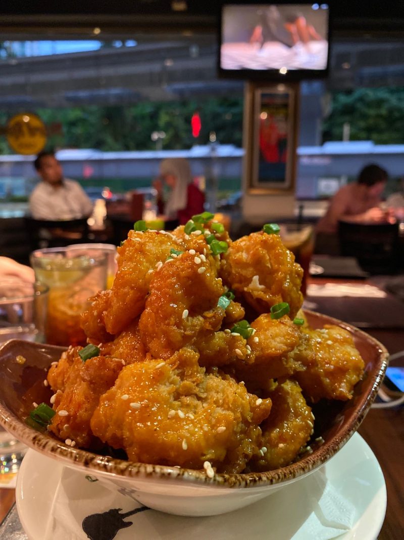 曼谷香辣虾子配上酸辣的酱汁与沙拉,真的会让人一口接一口。