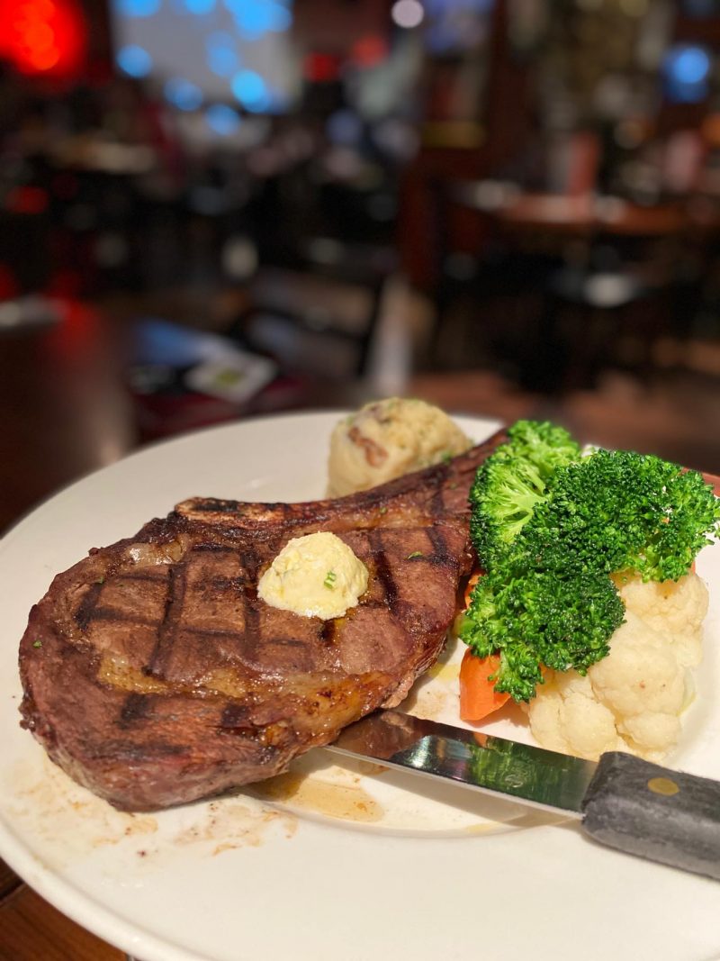454克烤肋眼牛排,搭配着香草牛油,马铃薯泥和新鮮蔬菜,回味无穷。