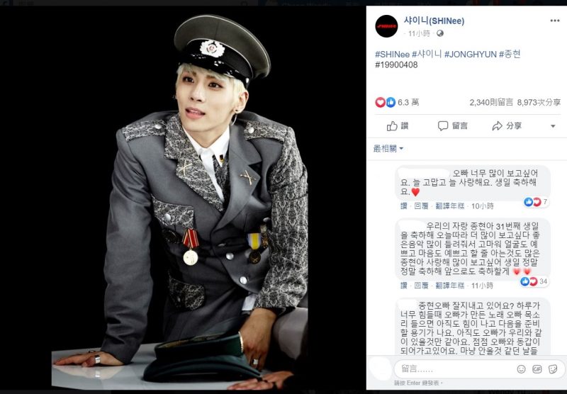 照片中的钟铉一身军装、头戴军帽配上金色头发,非常帅气,仿佛从未离开过大家。除了SHINee成员和SM工作人员,来自各国各地的粉丝也纷纷涌入贴文祝福他并表达对他的思念。