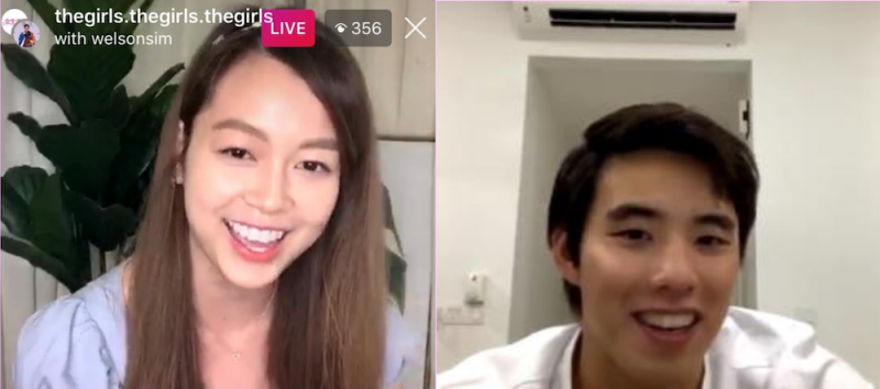 大马国际华裔小姐Jens张简宁,昨晚与大马游泳王子Welson沈威胜在“The Girls 女生来了” IG开直播,Jens以主持人的身份提问网民对沈威胜的问题,被网友问及他的理想对象类型,竟然直言喜欢镜头前像 Jens这种类型的女生!他说喜欢爱笑又长得白皙干净的女生,此话一出惹来众网民在线上起哄,不断留言要他们 “在一起、在一起!”,“跟Jens结婚!“,说颜值高的他们很配,让Jens顿时脸红尴尬不已,接不上话。
