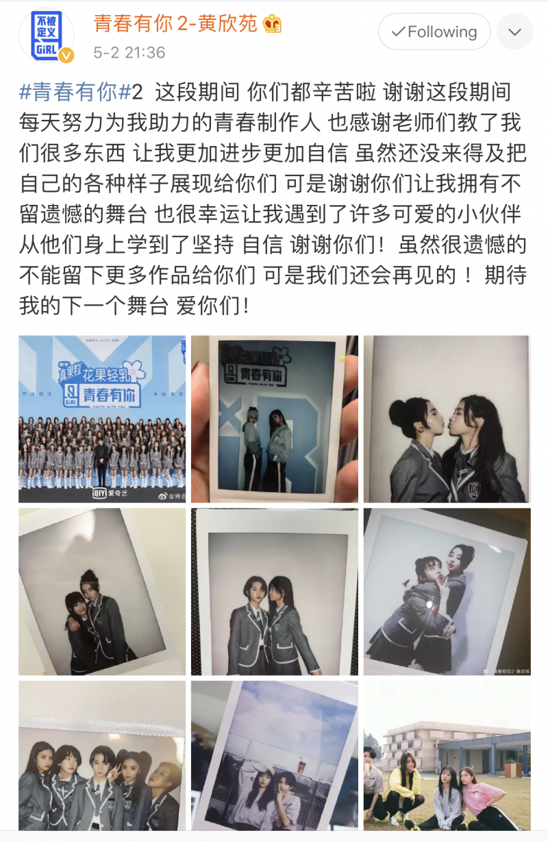 Home Entertainment 黄欣苑遗憾淘汰后首发文“还...