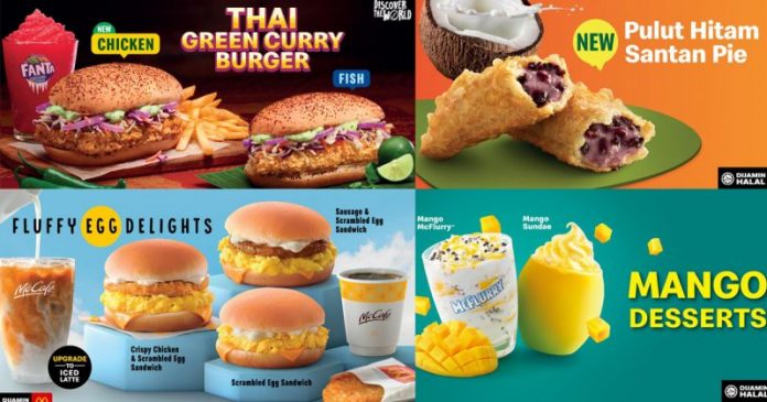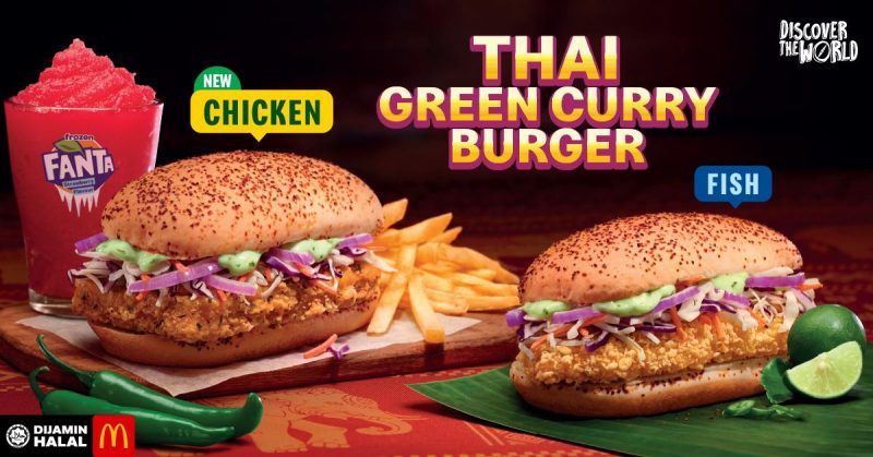 McDonald’s又推出新品啦!让人吃过一次就念念不忘的泰式绿咖喱汉堡这次也回归了,除了有鱼肉之外,还推出了鸡肉的汉堡;吃饱了还想再吃甜品吗?没问题!McDonald’s还推出了椰浆黑糯米派及芒果冰淇!