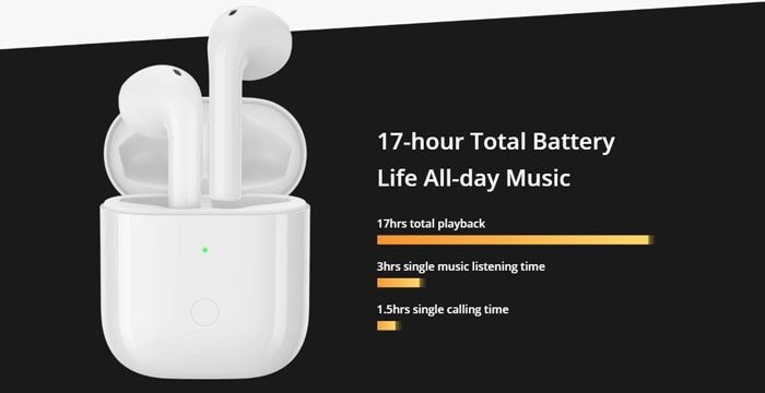 例如,当你仅仅使用耳机时,单次通话时长能达到1.5小时,单次听歌时长则是3小时;若是耳机+充电盒,总体续航能力可说是超长超惊人,足足17小时,让你听不停!