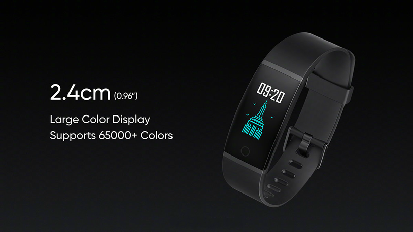 realme Band搭载了0.96英寸的彩色显示屏幕,分辨率为160×80,支持5级亮度调节,还能显示超过65000种颜色!不要小看realme Band的屏幕,它可是能在屏幕上容纳64个字母,还可以显示更长的通知。不过需注意的是,这个屏幕不是触控屏。