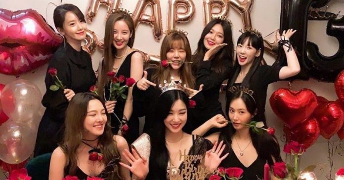 照片中,林允儿、徐贤、Sunny、崔秀英、金泰妍、金孝渊、Tiffany、Yuri 8位成员身穿黑色礼服,手中拿着红唇或红色玫瑰,不忘戴上口罩拍照。久违的同框画面依旧是那么的温馨,令粉丝大呼感动。