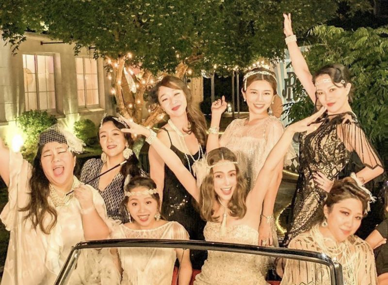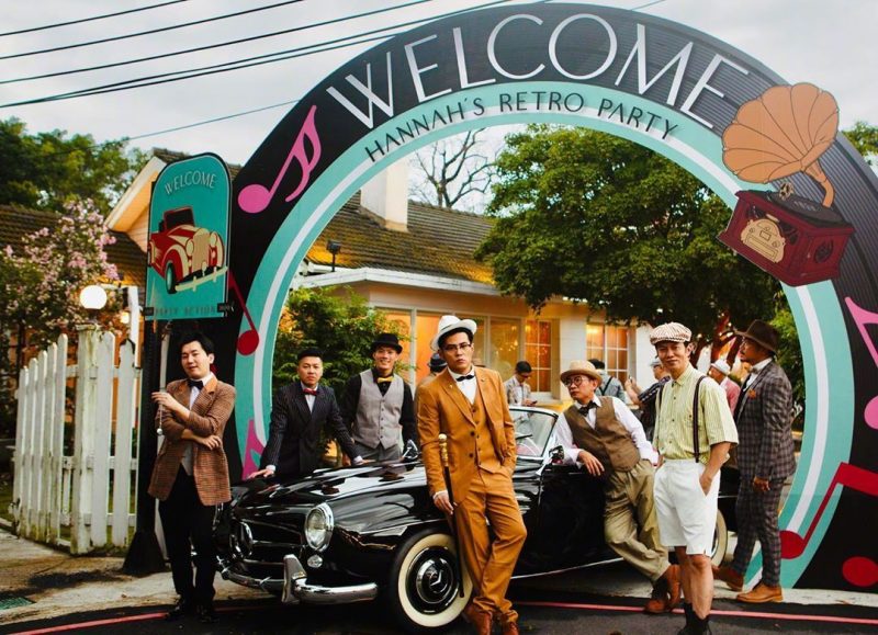 70年代主题的生日趴上,周杰伦、昆凌和家人们都穿得非常鲜艳及复古感的服装出席,让人有种身在《MOJITO》MV里的感觉。到了晚上,昆凌和朋友们换上一身华丽的裙子,仿佛真的回到了1930。