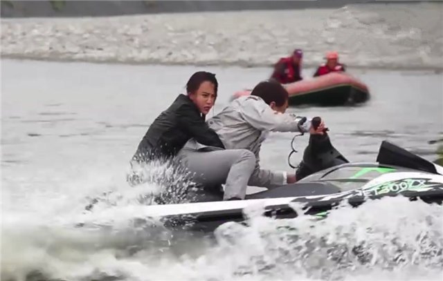 两人掉进海后,现场所有人著急狂喊“快救人!”。数秒后,只见母其弥雅一人浮出水面,一脸惊慌。由于成龙不见人影整整45秒,不仅吓得在场工作人员慌张落泪,还逼哭导演唐季礼,让人捏一把冷汗。