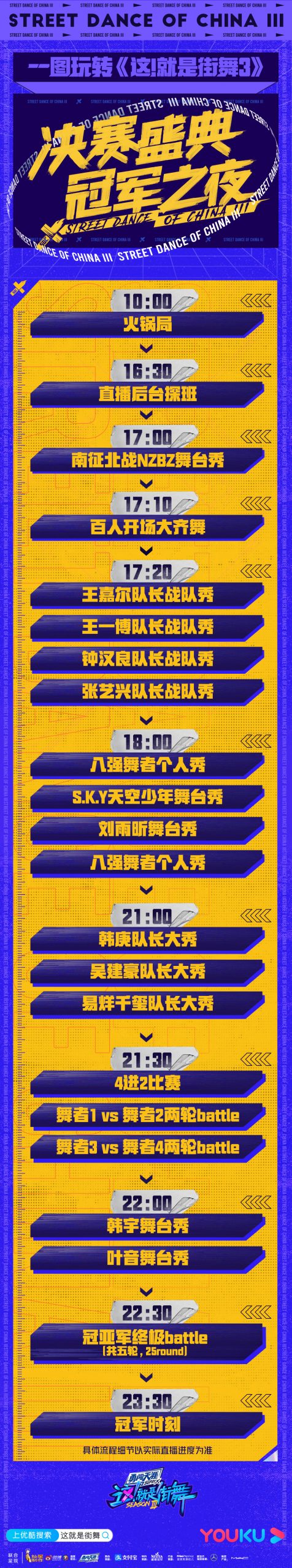 《这!就是街舞3》即将在10月3日迎来决赛盛典冠军之夜!昨日,官方微博公开了详细的流程图、决赛舞台和彩排剧照,让人紧张又期待!