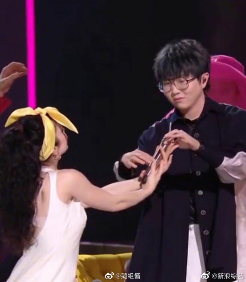 有眼尖的网友发现毛不易在与女伴舞互动时非常小心翼翼,拿麦克风的姿势更是像麦克风烫手一样,仅用4根手指小心翼翼地从女伴舞手中接过,接着才将麦克风完整握牢。