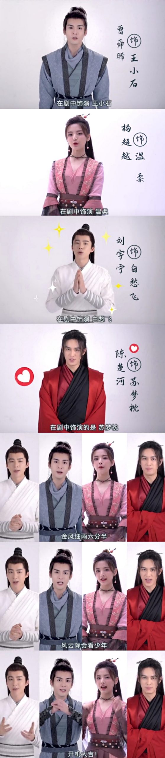 曾舜晞在剧中饰演的角色为王小石、杨超越饰演温柔,刘宇宁及陈楚河分别饰演白愁飞与苏梦枕。据悉,曾舜晞、刘宇宁和陈楚河在剧中将会结拜为兄弟。
