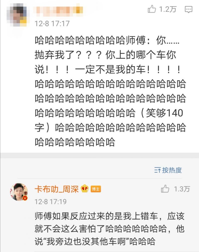 之后,周深还在评论区补充道,自己上车看到师傅的反应真的太好笑了,还表示如果司机反应过来是他上错车了,也许就不会那么害怕了,但当时旁边也没有任何的车辆啊!