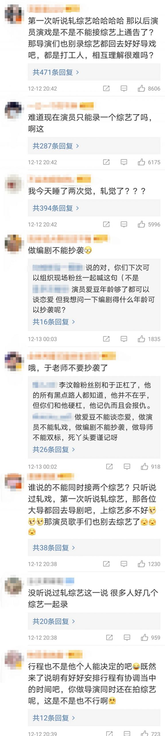 节目播出后,于正的点评引起不少李汶翰的粉丝不满,纷纷驳斥道“以后演员演戏是不是不能接综艺上通告了?那导演们也别录综艺都回去好好导戏吧,都是打工人,相互理解很难吗?”、“我今天睡了两次觉,轧觉了?”、“做编剧不能抄袭”等。