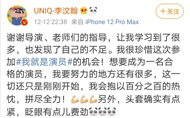 而李汶翰本人之后也发文感谢导演及老师的指导,表示“我很珍惜这次参加《我就是演员》的机会!想要成为一名合格的演员,我要努力的地方还有很多,这一切还只是刚刚开始,我会抱以百分之百的热忱,拼尽全力!”