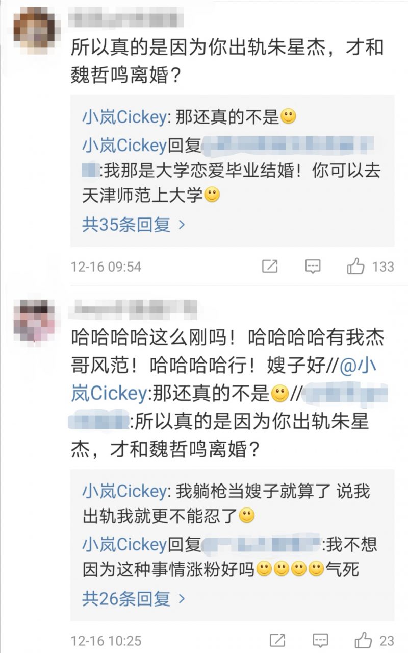 之后,就有网友到女方微博底下留言求证恋爱绯闻,不过她却否认了恋情,“我躺枪当嫂子就算了,说我出轨我就更不能忍了,间接承认了与魏哲鸣结过婚,她还提到两人是和平分手的,“我们是好朋友现在”。