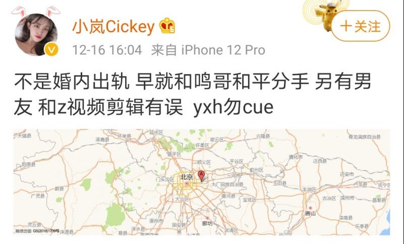 以为承认恋情了,事情就结束了吗?不,这段恋情就像狗血剧般来了个大反转,女方在朱星杰承认恋情后,又再发文否认恋情,表示自己“不是婚内出轨,早就和鸣哥和平分手,另有男友,和z视频剪辑有误,yxh勿cue”。