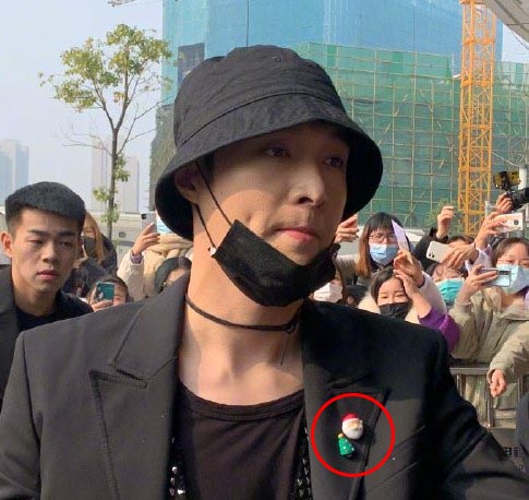 张艺兴还在衣服上别了圣诞老人、圣诞树的徽章,仪式感满分!