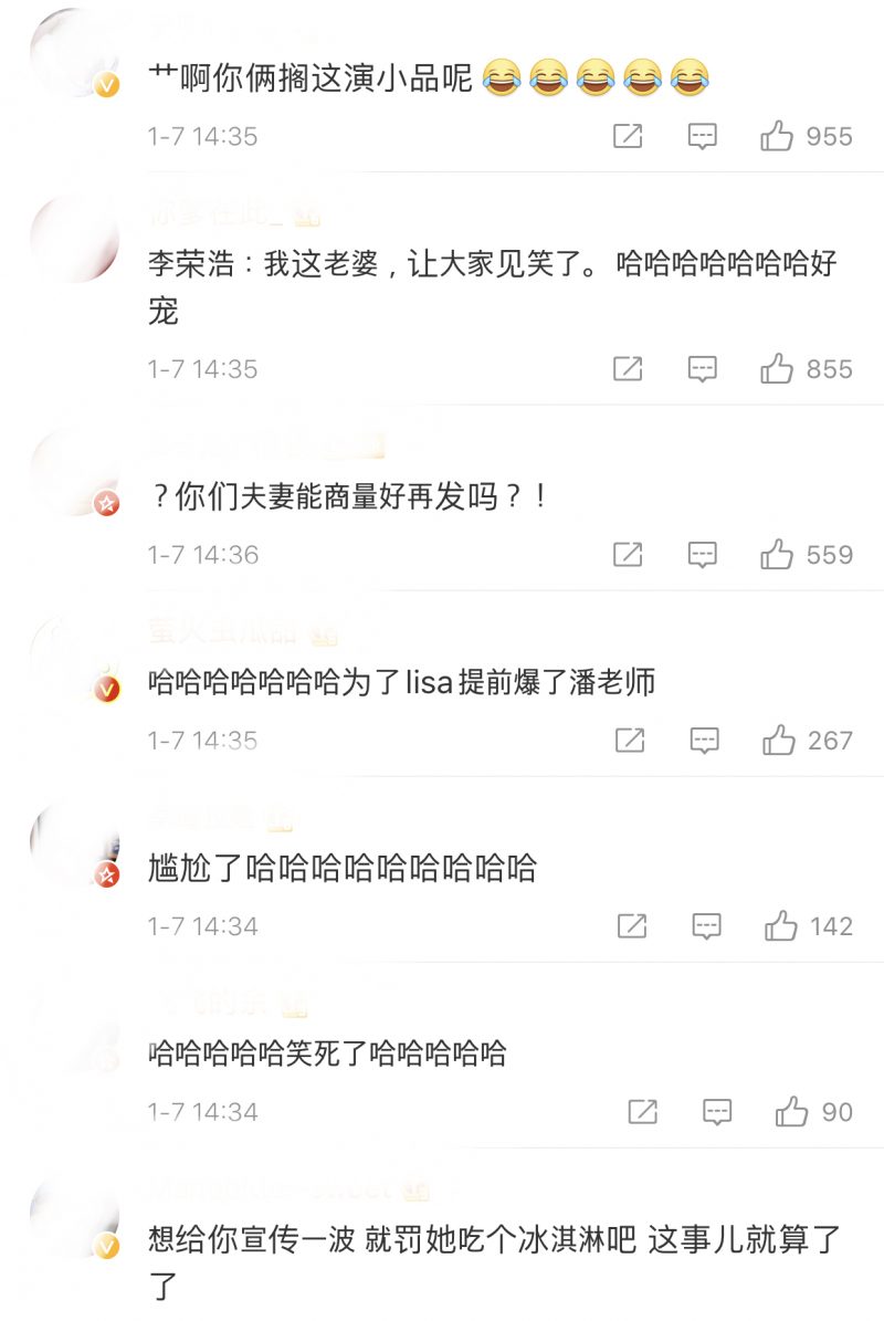 没想到李荣浩神回复,“他明天才官宣啊,问早了,哎呀”,间接承认潘玮柏是导师之一。网友看后喷笑,纷纷表示:“李荣浩:我的老婆,让大家见笑了”、“你们夫妻能商量好再发吗”、“丞琳你暴露了啦啦啦啦啦”、“爱奇艺:明天官宣的工作被人抢了”等。