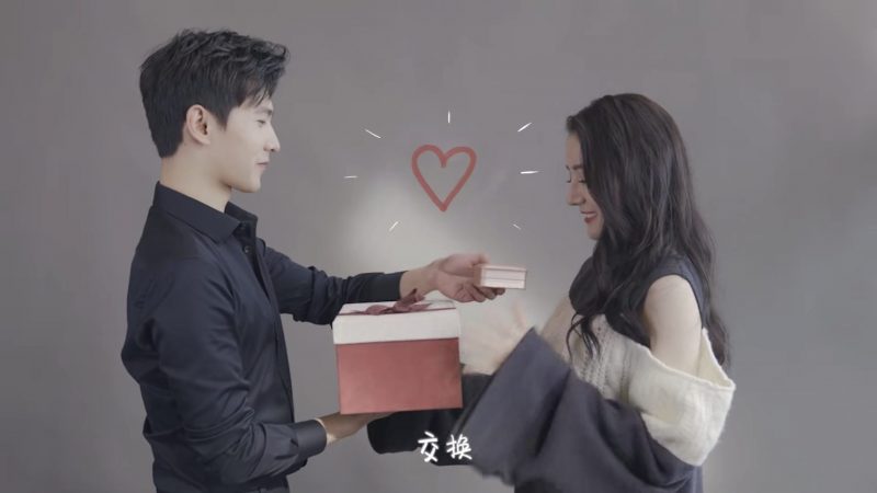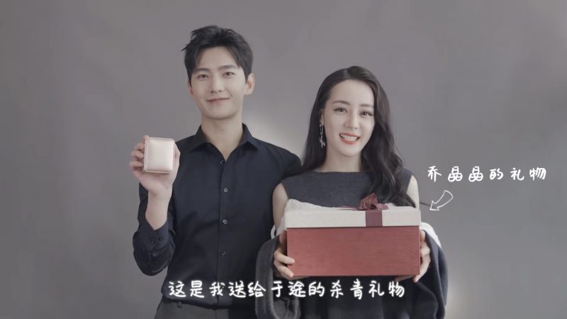 视频中,两人拿着送给对方的神秘礼物,说道:“这是我送给乔晶晶(迪丽热巴剧中名字)的礼物”、“这是我送给于途(杨洋剧中名字)的礼物”。于途手中的礼物犹如戒指盒的大小,乔晶晶的则是较大的四方形盒子。