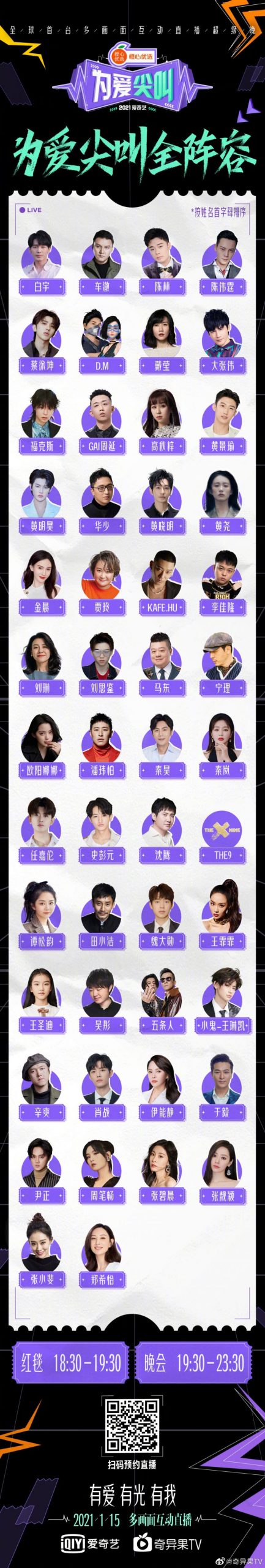 《2021爱奇艺为爱尖叫晚会》即将在今晚隆重引爆,官方终于公开了完整嘉宾阵容!