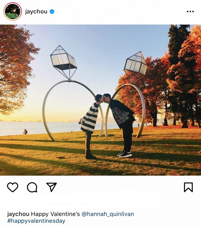 配合2月14日情人节,周杰伦(周董)在社交媒体上甜晒与爱妻昆凌嘴对嘴亲吻的恩爱照,配文:“Happy Valentine’s”。