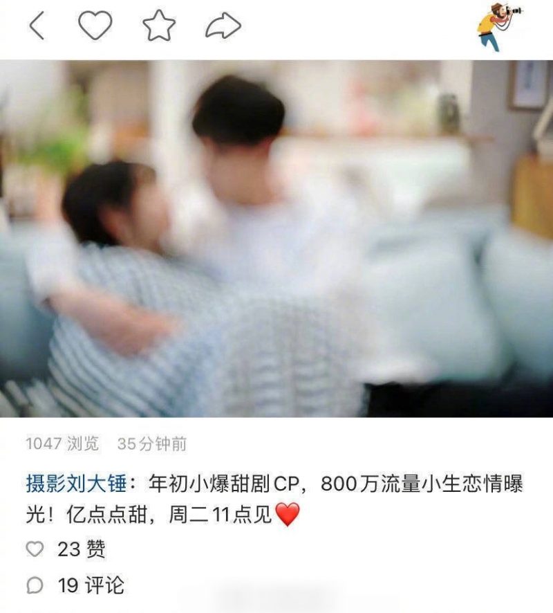稍早前有八卦博主就预告今日会曝光一段恋情,线索为热播剧《你是我的小确幸》和800万流量的艺人,引起网友猜测唐晓天和邢菲因戏生情,没想到女主角并非邢菲,而是另有其人!