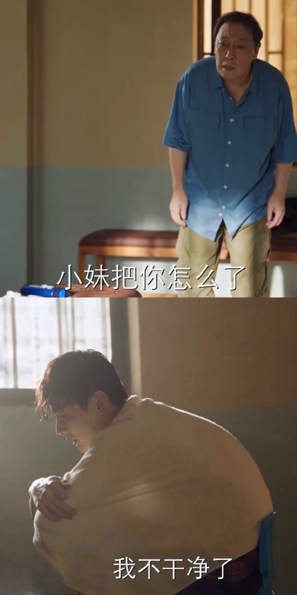 据曝光的最新预告,白敬亭饰演的过三爽误入女浴室洗澡,结果被吴倩饰演的叶小妹撞破,让他不知所措。无奈被看光的过三爽独自委屈巴巴地蹲在房间里,说:“我不干净了”。