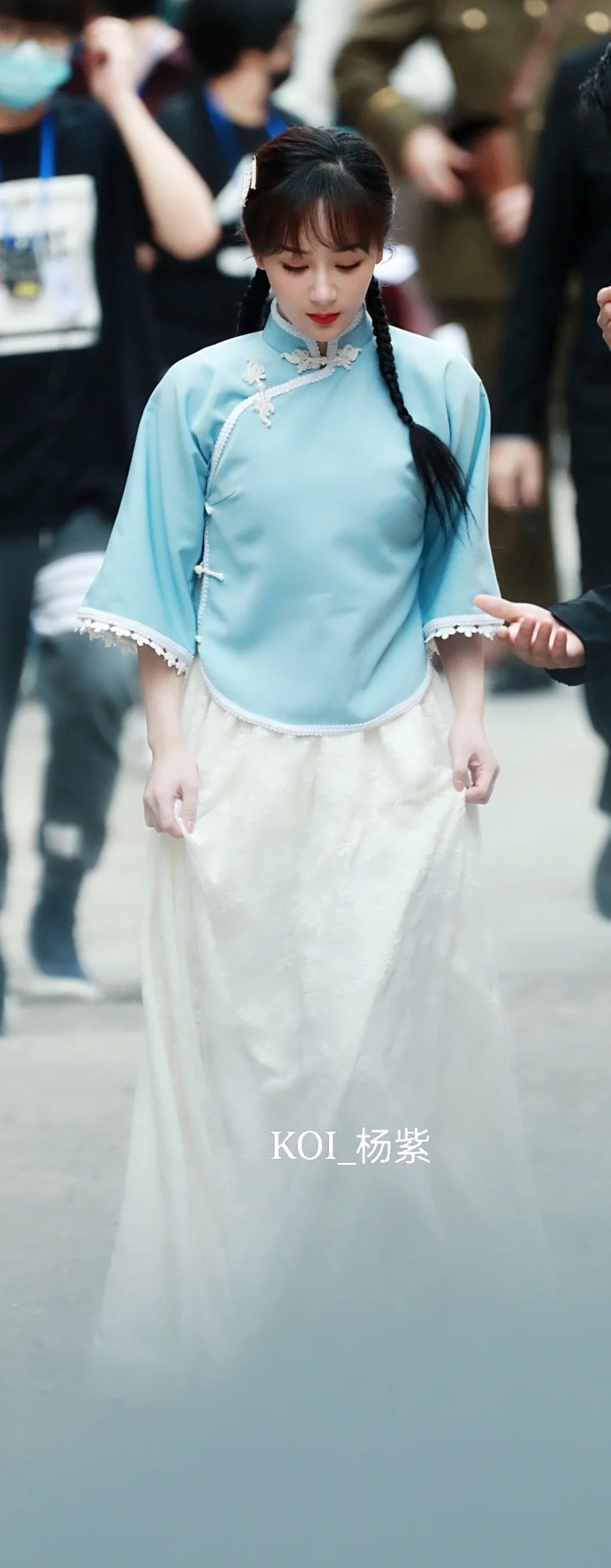 另外,也有粉丝拍到杨紫换上民国服装的造型,宛如民国时期的大家闺秀。
