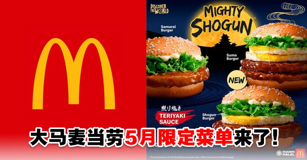 早前大马McDonald’s推出了新的5月份限定菜单,当中包括早期出过Samurai Burger、White Chocolate & Strawberry Pie和Brown Sugar Boba McFlurry!之前错过的朋友们可别再错过咯!此外,McDonald’s还特别推出了全新系列汉堡包New Legends – Shogun Burger和Sumo Burger!