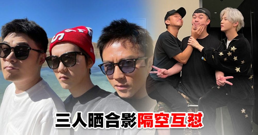 照片中,三人以全黑服装出镜,站在中间的陈赫两手摆V,邓超把腿搭在陈赫的腿上,单手撑着他的下巴,鹿晗则做出与邓超同样的姿势,手握紧邓超的手腕,画风搞笑。