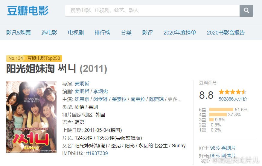 据悉,《阳光姐妹淘》是一部韩国电影并于2011年进行拍摄,在豆瓣的评分获8.8高分,口碑可说相当高。当时在韩国上映后,票房连续霸占了两个月的榜单,可见这部电影非常受欢迎。该电影主要讲述姐妹之间醇厚的情谊,岁月的洗礼也未能将这份的情谊剥夺。