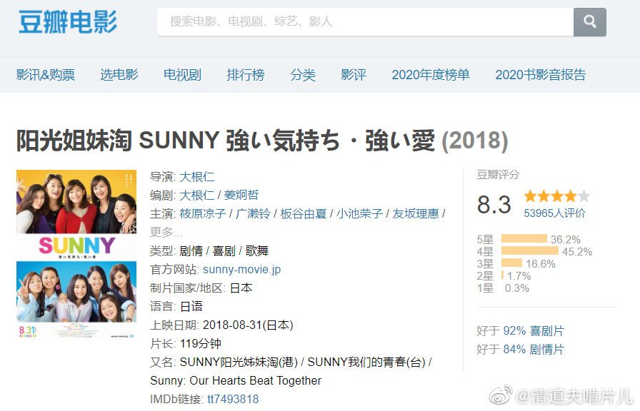 此外,日本也在2018年翻拍了《阳光姐妹淘》,当时的口碑也相当不错,豆瓣评分获8.3高分。