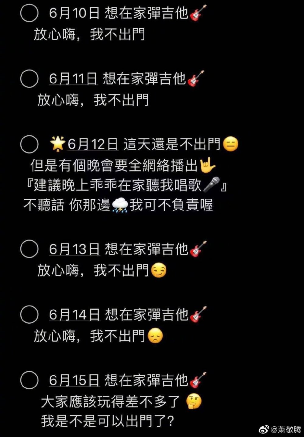 你可以不相信天气预报,但你不能不信萧敬腾!近期有粉丝在萧敬腾盛典彩排照下留言,询问偶像最近的行程,没想到萧敬腾本人居然回复了!还晒出了自己的理想行程,让粉丝放心出门!