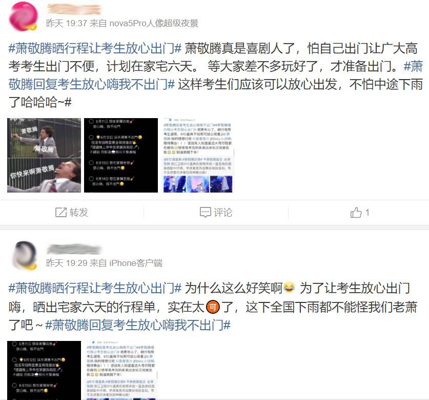 没想到居然引出了萧敬腾本人回复,暖心的晒出行程,让网友好好带着弟弟出门,还温馨提醒6月12日有个晚会全网络播出:“建议晚上乖乖在家听我唱歌,不听话 你那边下雨我不负责哦!”,俏皮的语气萌到了许多网友。