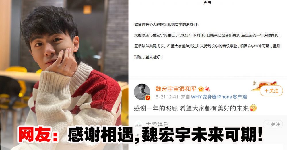 据“大脸娱乐”的声明,魏宏宇已于今年6月10日结束合作关系,“在过去的一年多时间内,互相陪伴成长。希望大家继续关注并支持魏宏的音乐事业,祝福魏宏宇未来可期,星路璀璨,越来越好!”
