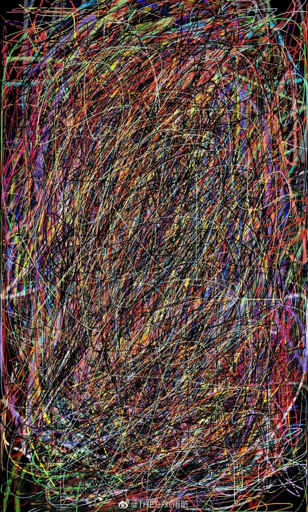 从画作中可见,刘雨昕用了大量不同色彩的线条,把图纸填满,形成了一幅画。不过,也有一些网友表示,通过这幅画作,看不出来刘雨昕当中想表达的意思,但依然套用“粉丝滤镜”大夸刘雨昕:“贵州毕加索名不虚传”、“乱中有序,灵魂画手”、“平平无奇的线条运用小天才一枚”。