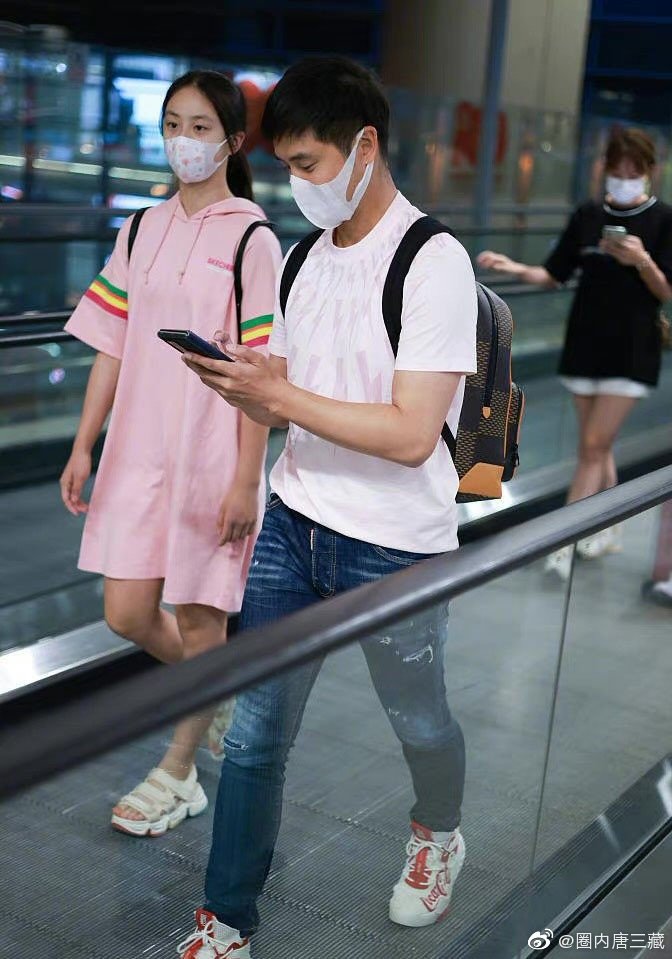 图片中可见,田亮和身穿粉色连衣裙的森碟走在前面。刚满13岁的森碟和爸爸站在一起,身高一点都没输,腰线似乎也跟171cm的田亮一般高,完美继承了父母的优良基因。
