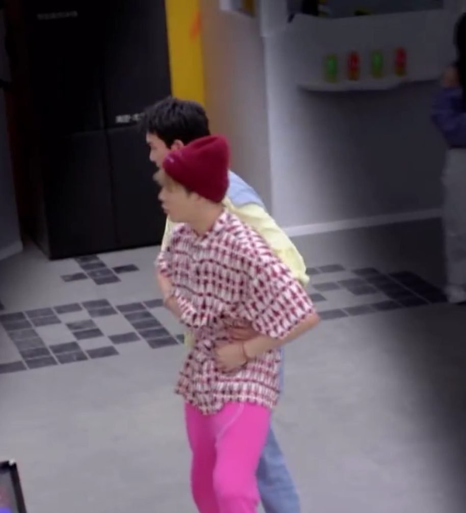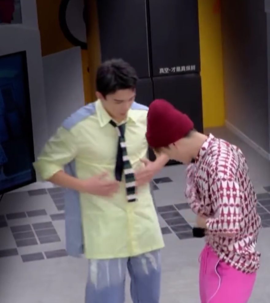 搞笑的是,王嘉尔一听闻就立马掀起衣服来,秀出自己的腹肌,调侃自己的腹肌是“肥肉”。不料,吴磊反望向自己的腹肌,狂拍自己的肚子说:“我这才是肥肉”,还向王嘉尔“发送邀约”:“你摸摸我”,造成了两人认真互摸对方腹肌、争论“谁的才是肥肉”的画面,令观众看了不禁爆笑起来!