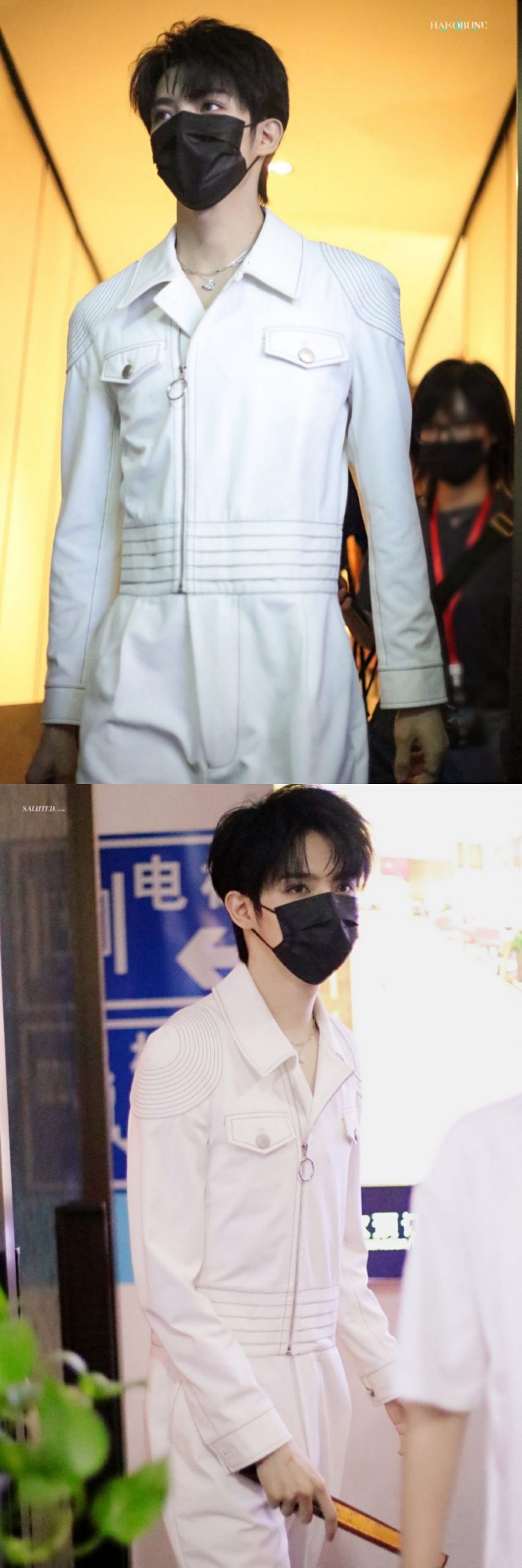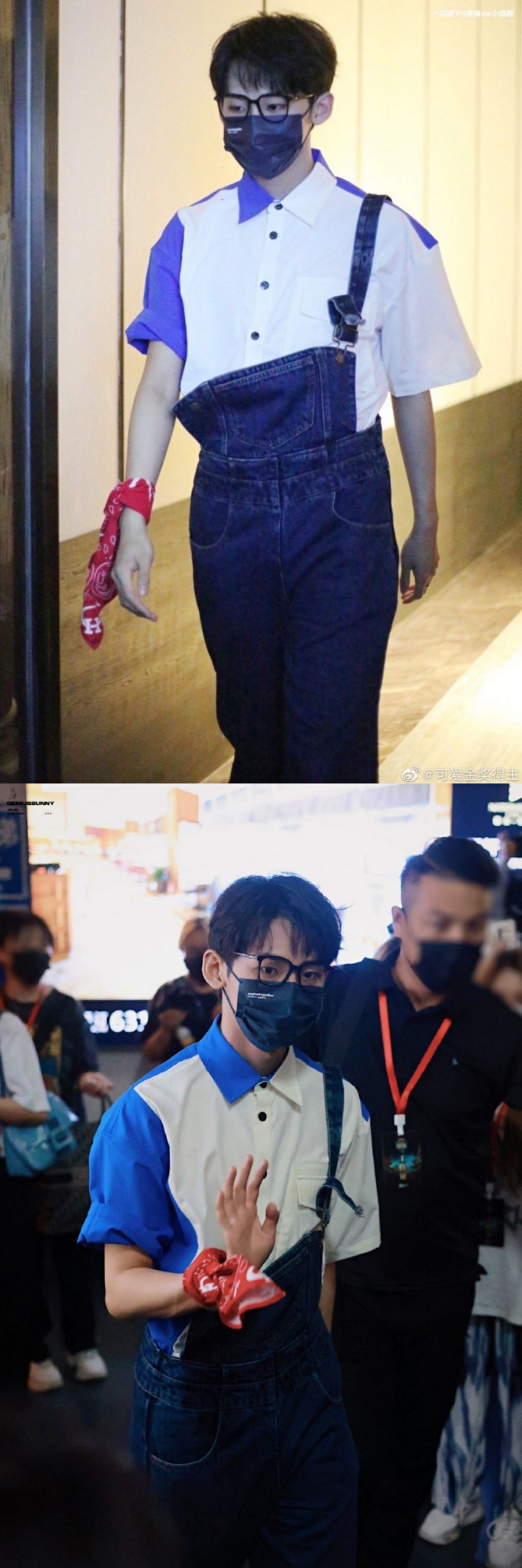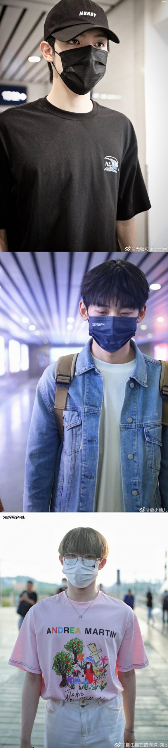 据曝光的路透可见,罗一舟、唐九洲、刘隽均以谈色系清爽造型出现,尽显活力满满的书香范!罗一舟戴着黑色口罩,身穿白色连体工装,手上还拿着一把扇子;唐九洲也是戴着黑色口罩,身穿蓝白衬衫,外搭牛仔背带裤,右手系着印有图案的红白丝巾与粉丝们打招呼。