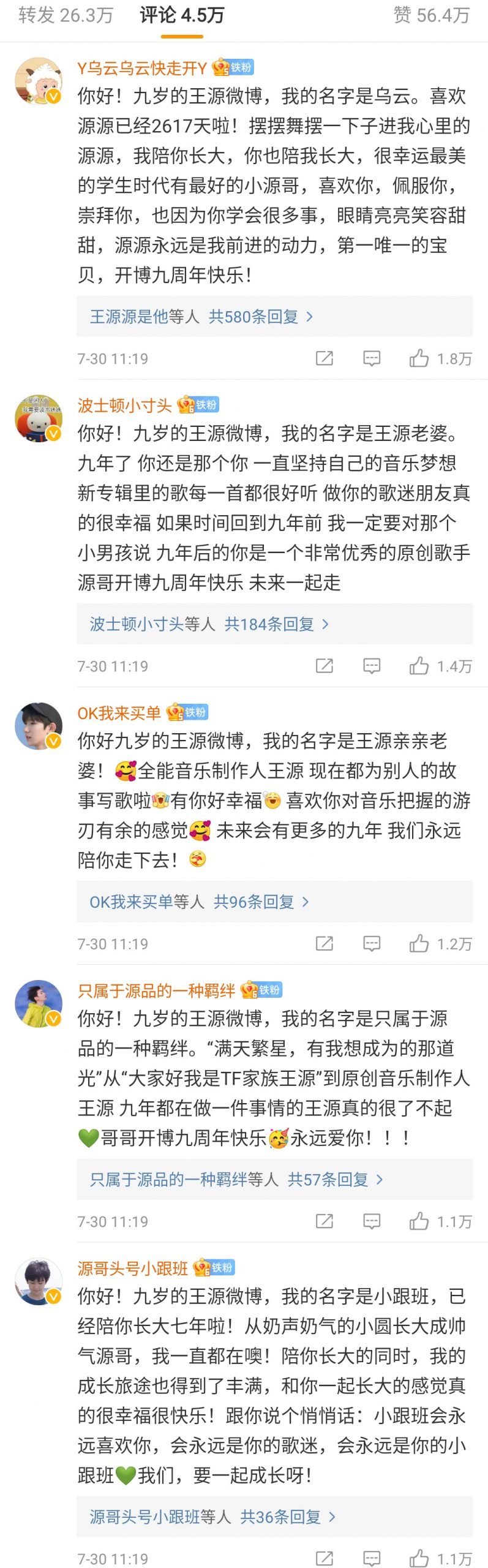另外,值得一提的是,配合王源微博开通九周年,不少粉丝在他的帖文底下展开深情告白,排场十分壮观。