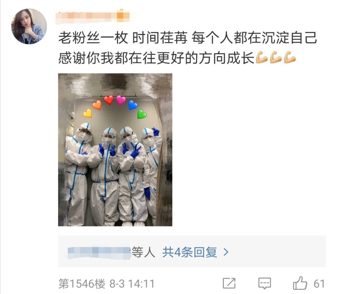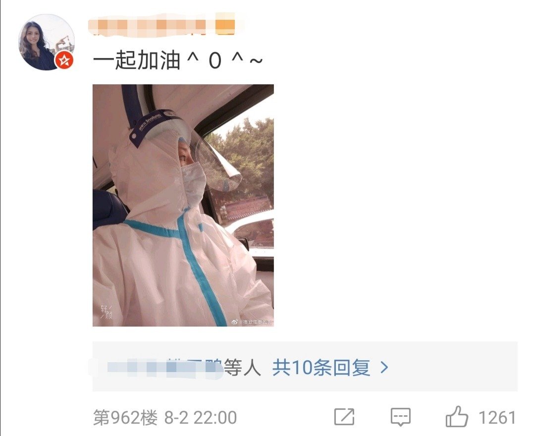 值得一提的是,也有不少在一线工作的网友纷纷在该帖文底下晒出自己身着防护服的照片,并且互相打气,满满的正能量让众人热泪盈眶!