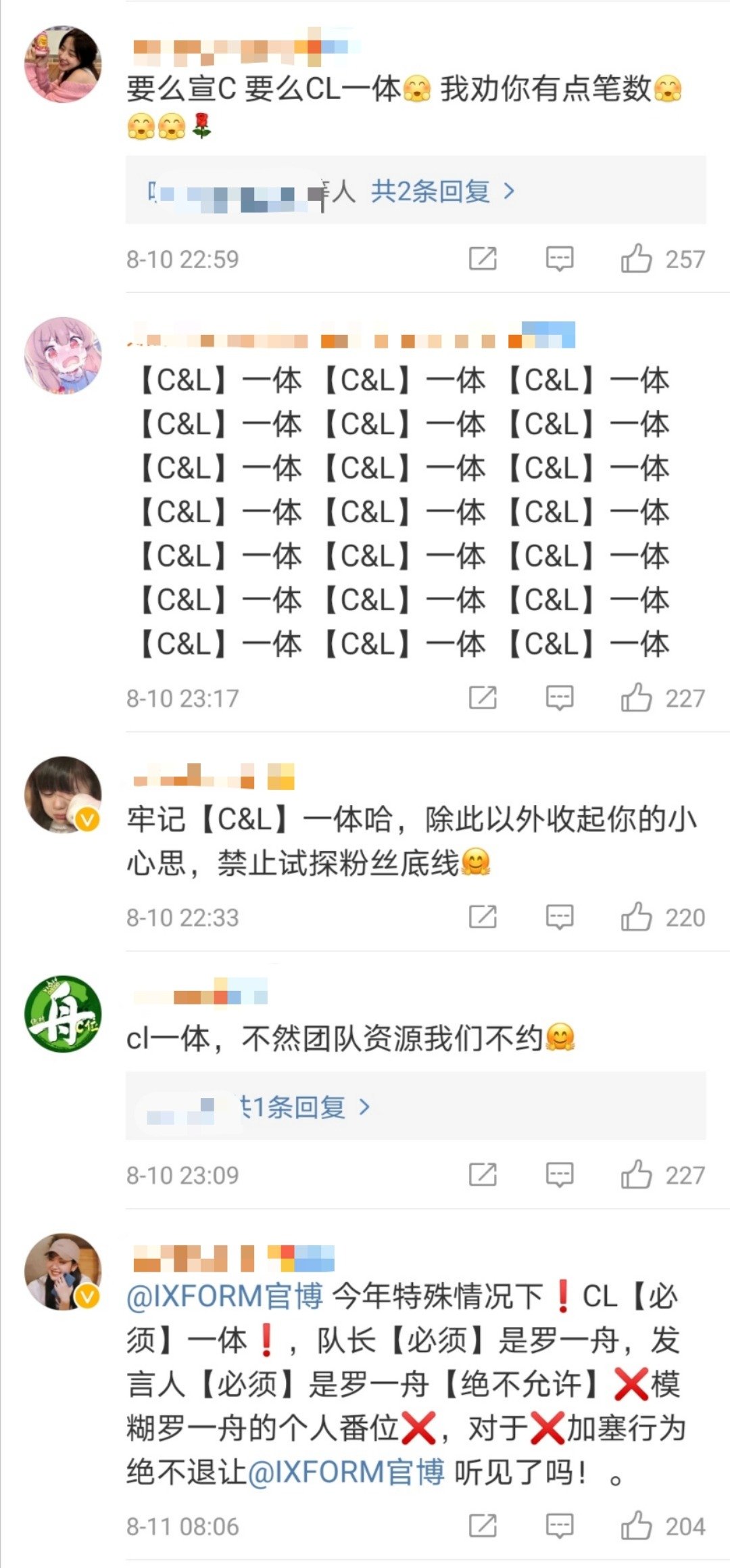 网传IXFORM队长一职由排名第7的刘隽当选,引起罗一舟粉丝不满!罗一舟粉丝纷纷涌入IXFORM官博评论区抗议并进行维权,表示中心位和队长必须一体且由罗一舟担任。