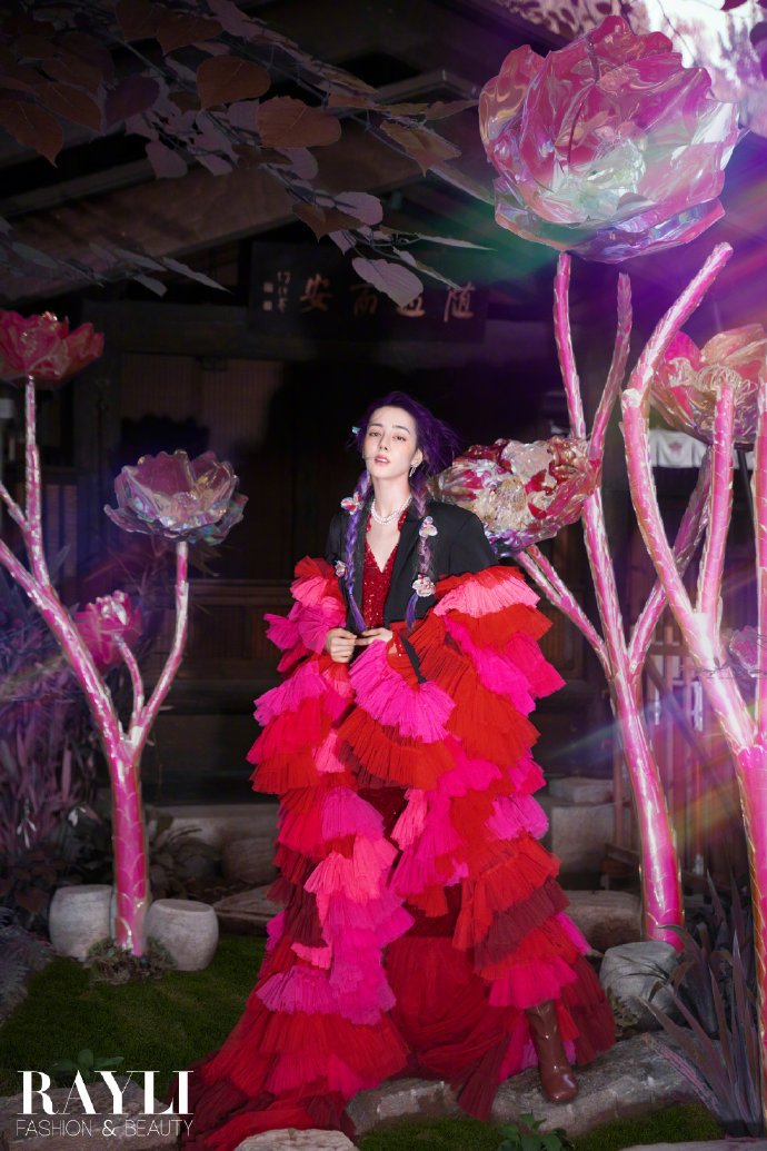 近日,迪丽热巴被释出一套奇境氛围感大片,这是她与《瑞丽》杂志合作推出的九月刊×26周年双封面,其紫色与绿色的编发,化身为繁花锦簇中的精灵少女,浓烈的色彩带来不一样的视觉冲击。