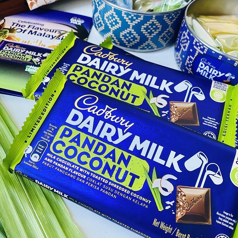 自2018年以来,马来西亚Cadbury便陆续推出本土风味巧克力,而Cadbury Dairy Milk Pandan Coconut 班兰椰香巧克力是第三款限量发行的本土风味巧克力。浓郁芳香的班兰叶和香甜椰子相结合的传统风味一直是世世代代马来西亚人喜爱的经典口味。早前,马来西亚Cadbury推出的Cadbury Dairy Milk Kopi C 咖啡巧克力和 Cadbury Dairy Milk Durian榴梿巧克力广受消费者欢迎。