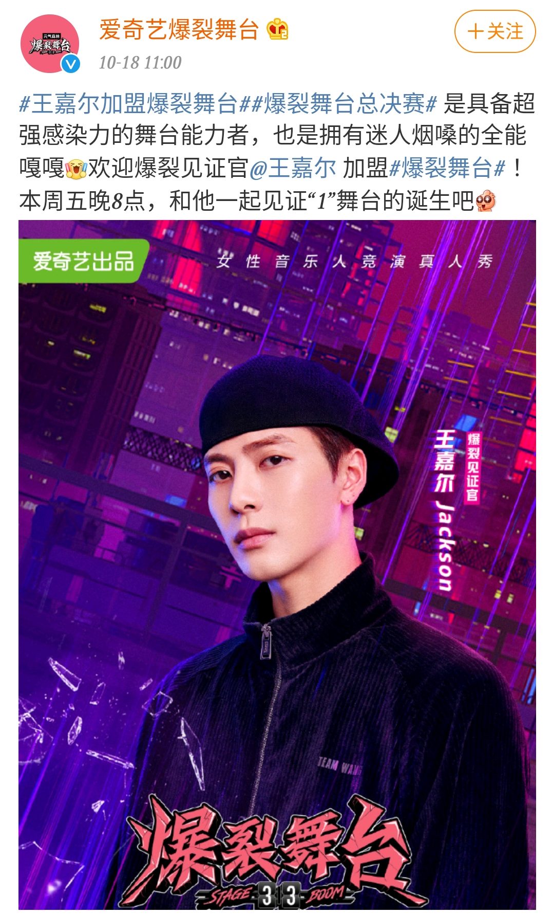 此外,预告中王嘉尔现身总决赛舞台,绝佳的舞台掌控能力搭配上其迷人烟嗓,瞬间炸翻全场!期待全能嘎嘎在《爆裂舞台》中的精彩表现!