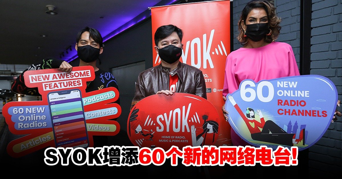 Astro电台和SYOK将会是马来西亚第一个同时推出最多新网络电台的广播电台及应用程式,因为你除了能在SYOK应用程式和电视频道上继续收听Astro自家电台:ERA、MY、HITZ、RAAGA、SINAR、GEGAR、ZAYAN、MELODY、GOXUAN、MIX、LITE,还可找到60个新的网络电台。